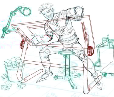 Pratique usar a imaginação. Se sentir que está confuso, simplifique; se preciso for, recomece de maneira básica, do geral para o específico. Pense, pense e pense antes de desenhar e enquanto desenha. Aprenda a fazer escolhas e tomar decisões, essa é a essência do desenhista; é o que o diferencia do observador. Acredite sempre na sua capacidade e nos seus instintos. Experimente, arrisque, risque e rabisque.