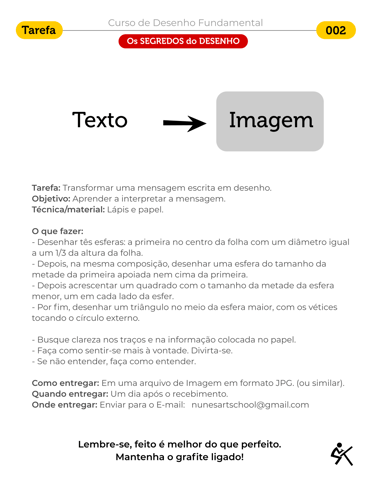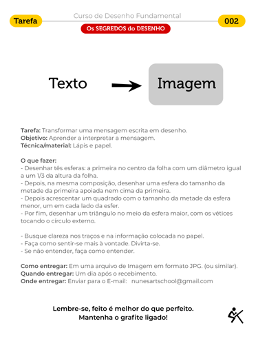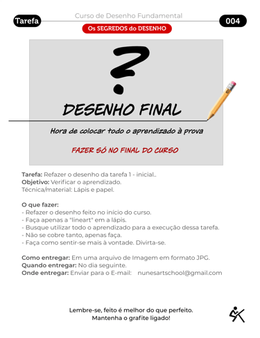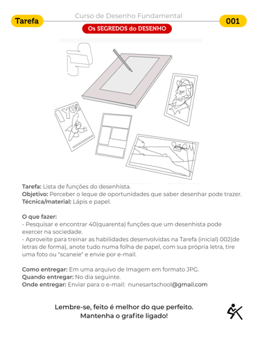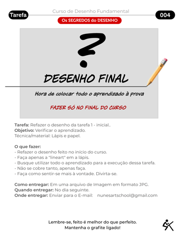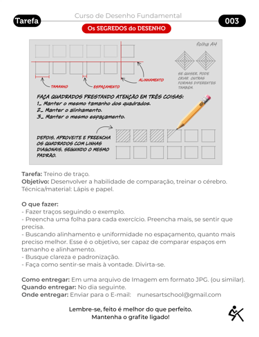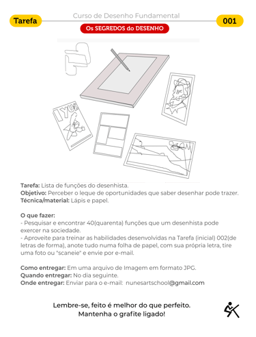 Siga as instruções contidas em cada Tarefa. Lembre-se de que a Comunicação é a ferramenta do desenhista, por isso preste bastante atenção às instruções contidas nas tarefas para que você as execute com o máximo de precisão.